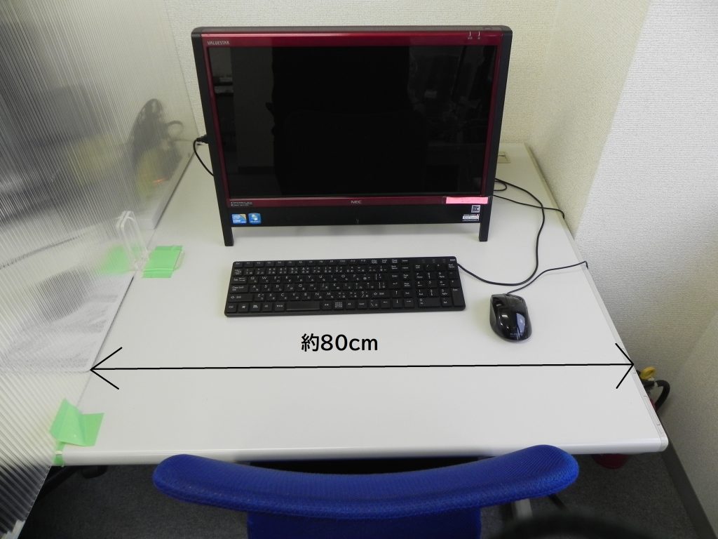 作業スペースはプラスチック板で区切られているので、他人の目を気にしながら作業するということはありません。