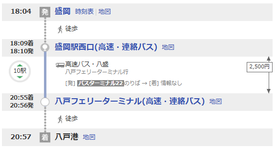 盛岡駅西口→八戸港フェリーターミナル 2,500円