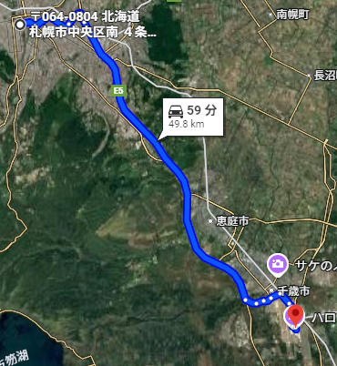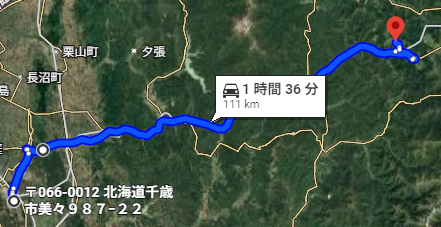 道中食事ができる場所は「輪厚PA(食堂)」「金山PA(コンビニ)」高速を降りてから「ラーメン屋」と「そば屋」があります。食事の時間は含めていないので、道中食事をとった場合は到着時間がその分遅れることになります。