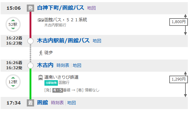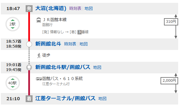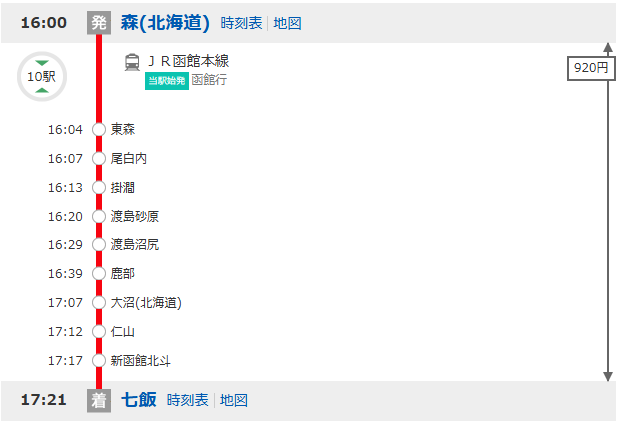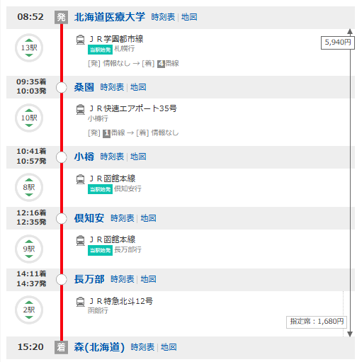 札幌→岩見沢→札幌→北海道医療大学→桑園→小樽→倶知安→長万部→森→七飯→大沼→新函館北斗→江差