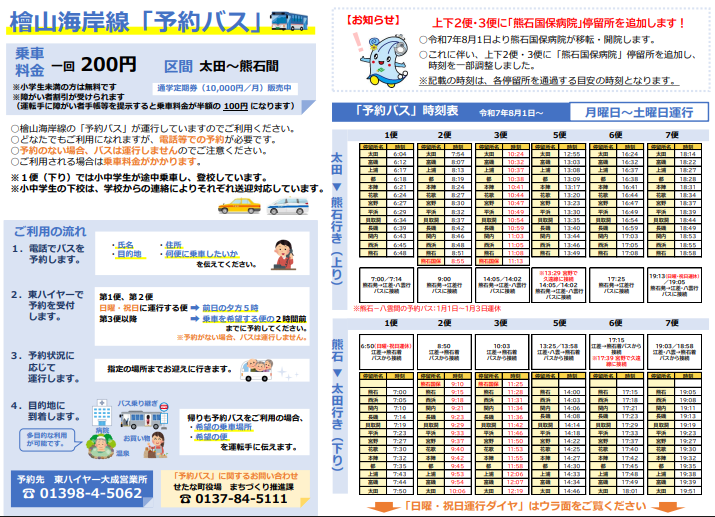 熊石~太田トンネル 200円 ※デマントバスなので事前予約が必要