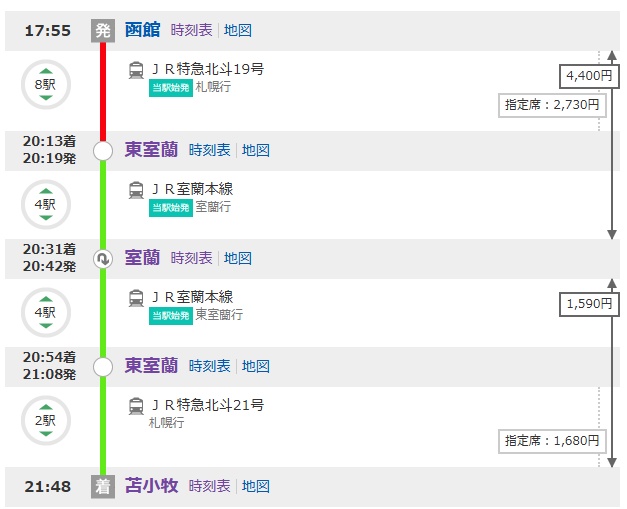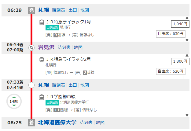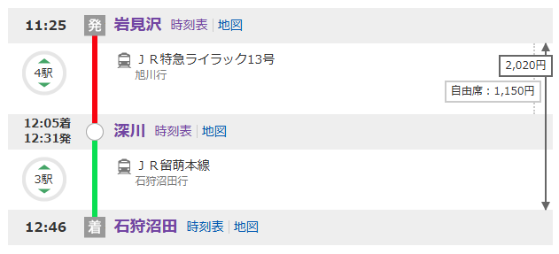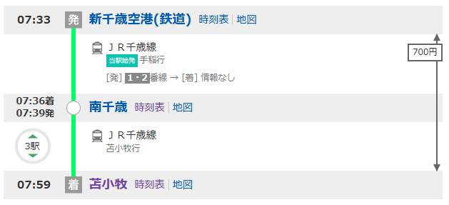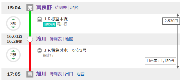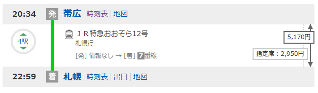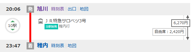 出発地は札幌駅で、最終到着駅も札幌駅にします