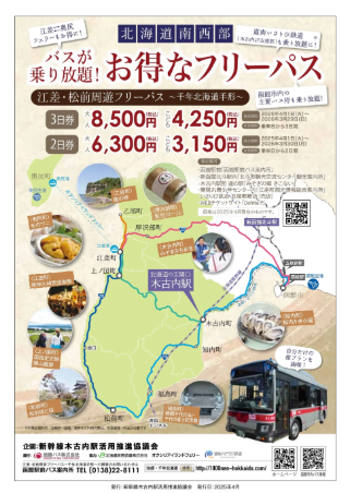 江差・松前周遊フリーパス~千年北海道手形2日分 6,300円