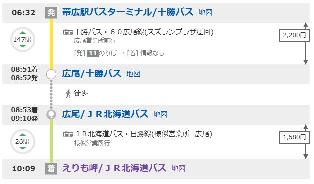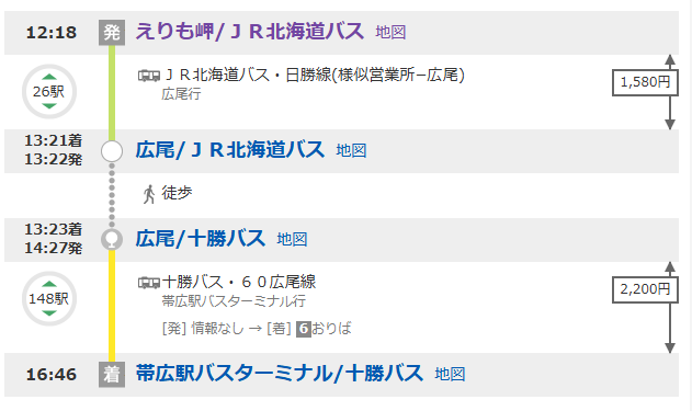 途中の広尾でえりも岬方面行きのジェイ・アール北海道バスに乗り換えてください