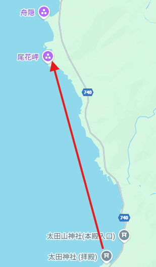 (尾花岬は直接行くのが危険なので太田神社拝殿から尾花岬を見学)