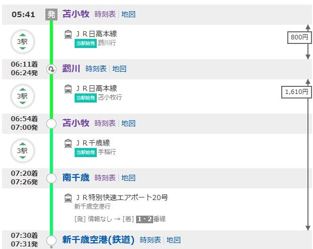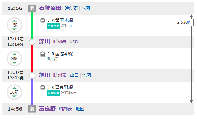 苫小牧→鵡川→苫小牧→南千歳→新千歳空港→南千歳→苫小牧→岩見沢→深川→石狩沼田→深川→旭川→富良野→滝川→旭川→稚内