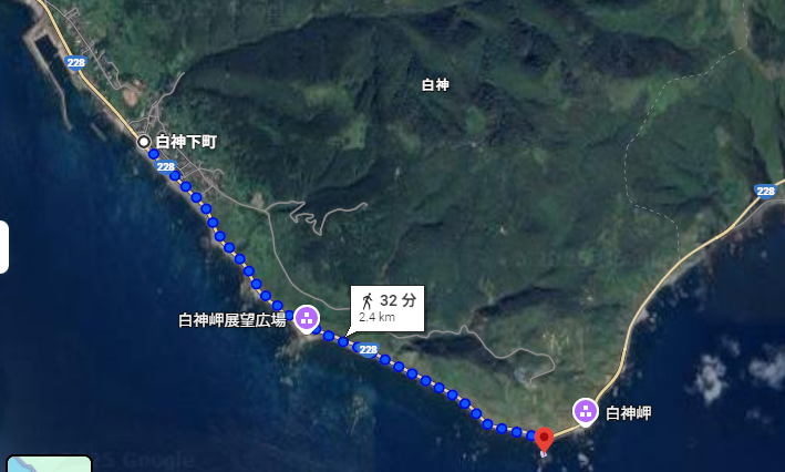 ※白神下町バス停から白神岬は2km/h以上あるので自信がない方は、