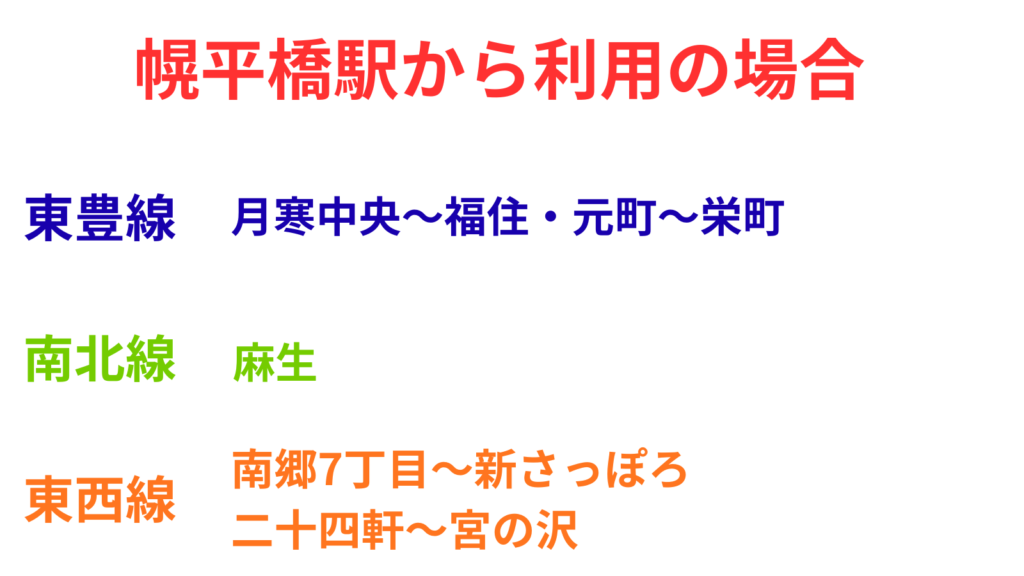 東豊線各駅からご利用の方は下記リンクの記事をご覧ください