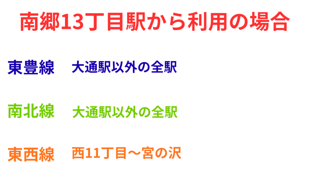 東豊線各駅からご利用の方は下記リンクの記事をご覧ください