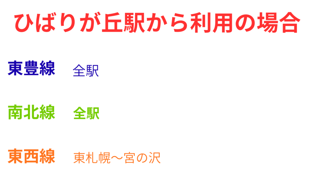 ひばりが丘駅から往復の場合は東西線内では東札幌駅~宮の沢駅間、東豊線と南北線は全駅は『ドニチカ』の利用の方がお得になります。